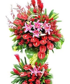 - Được thiết kế với tông màu đỏ hồng rực rỡ và hoa ly làm chủ đạo, kệ hoa "Đại phú quý" mang vẻ đẹp sang trọng, tinh tế và lời chúc may mán, thịnh vượng đến người nhận. Đây sẽ là lựa chọn tuyệt vời dành tặng cho đối tác hay những người thân của bạn.