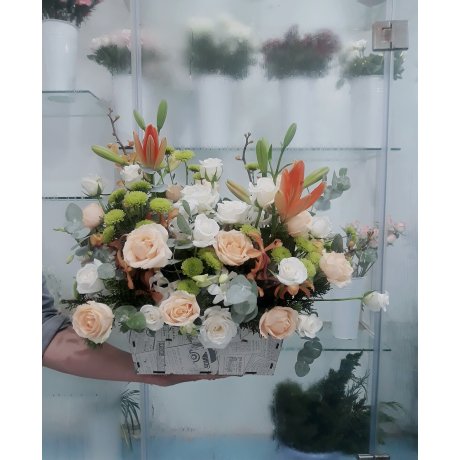 - Anh sẽ là dòng sông để em là biển rộng, anh sẽ là gió lộng để em là mây bay, anh sẽ là nắng mai để em là hoa đỏ, anh sẽ là lối nhỏ để em bước vào đời. Lẵng hoa với gam màu cam vàng dịu dàng thể hiện sự ấm áp và bình yên khi có anh, lẵng hoa như lời cảm ơn gửi đến anh nhân ngày sinh nhật