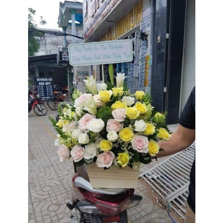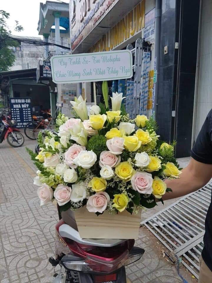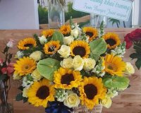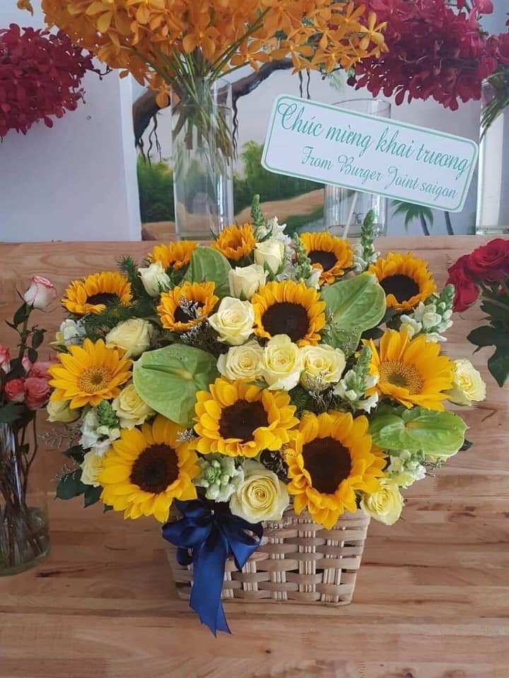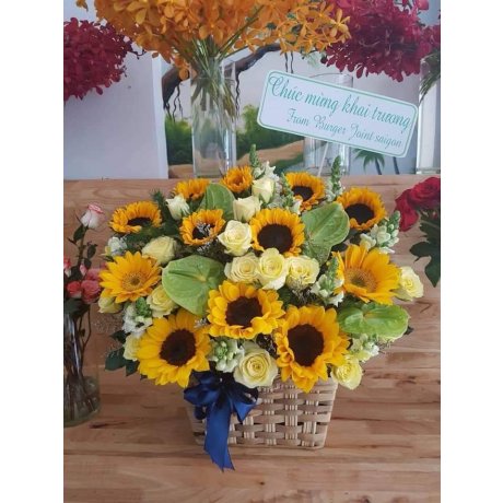 - Hoa Hướng Dương tượng trưng cho sự ấm áp, tình yêu chung thủy do đặt tính loài hoa luôn hướng về phía mặt trời. Lẵng hoa thích hợp tặng sinh nhật cho phái nam trông mạnh mẽ và ấm áp.