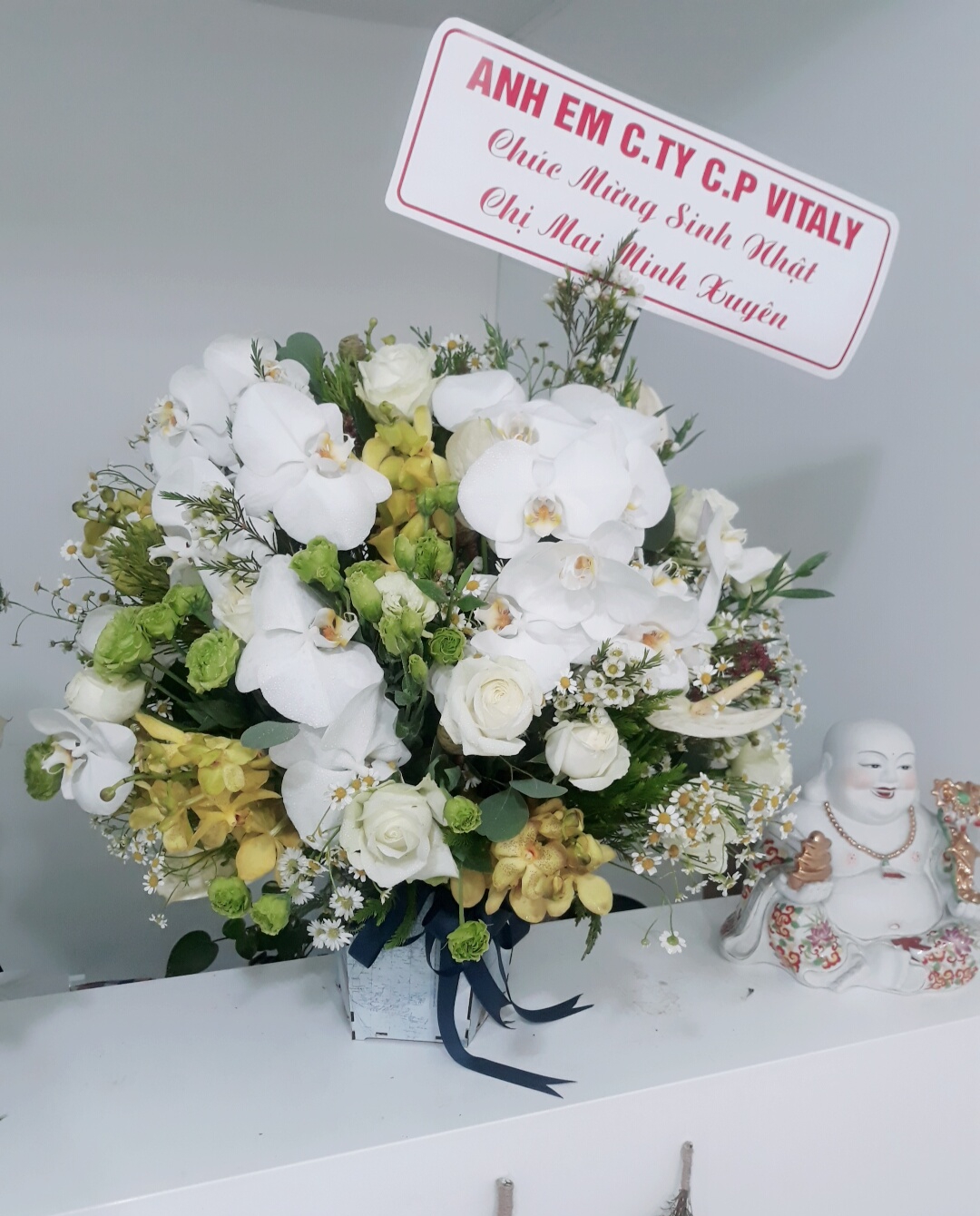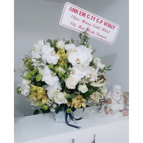 - Lẵng hoa với sự kết hợp những nhánh Lan Hồ Điệp sang trọng thích hợp tặng sinh nhật người lớn tuổi.